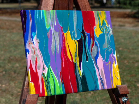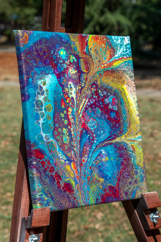 We're crafting these pieces with acrylic paint and pigments on canvas, plywood or any surface we find. You can also find limited edition high quality prints or you can ask us for a custom piece. We're open for everything creative and colourful.